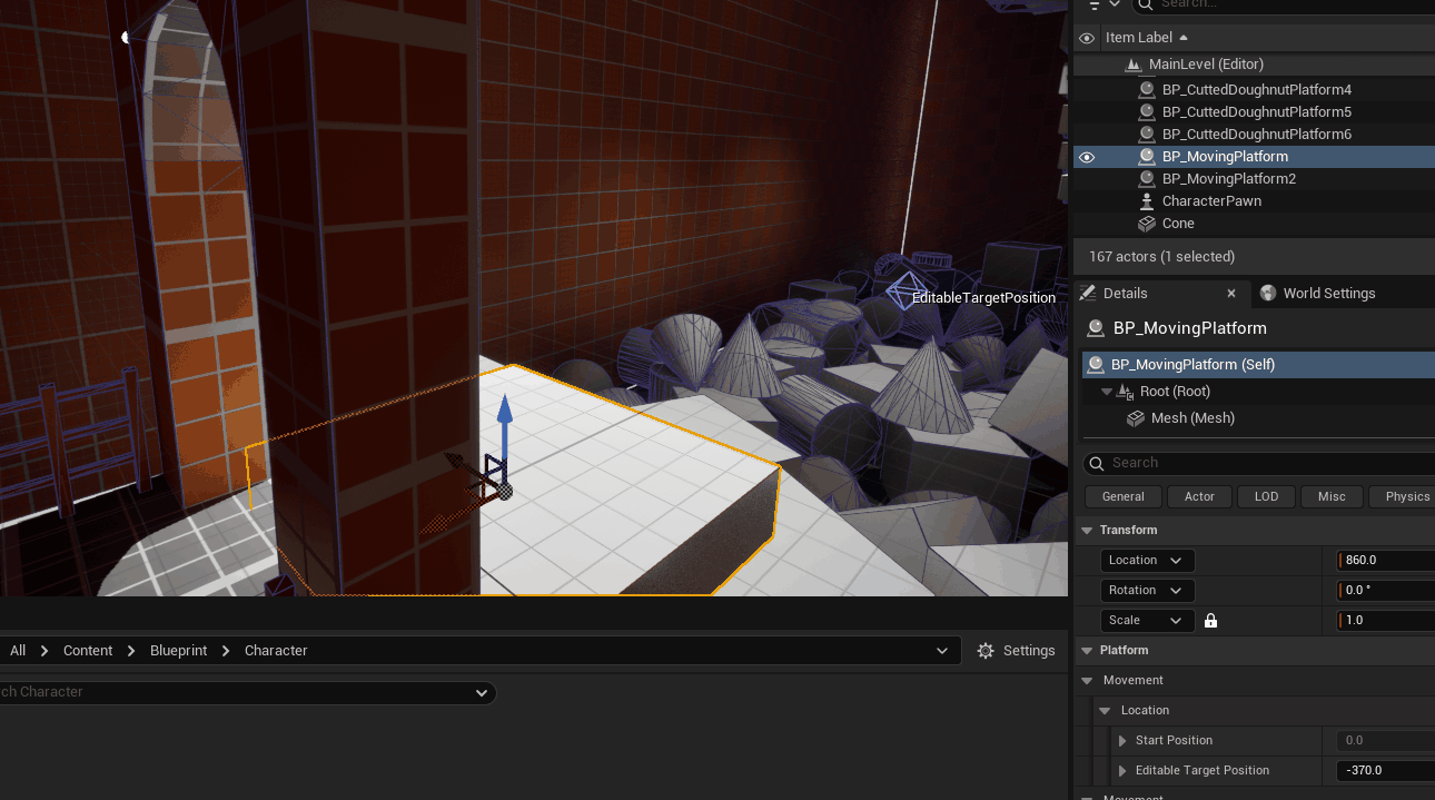 마지막으로 별도의 변수에 저장하는 값은 Editable Target Position의 World Position으로 처리한 후 저장했기에 이상없이 동작하는 플랫폼을 만들 수 있었다.